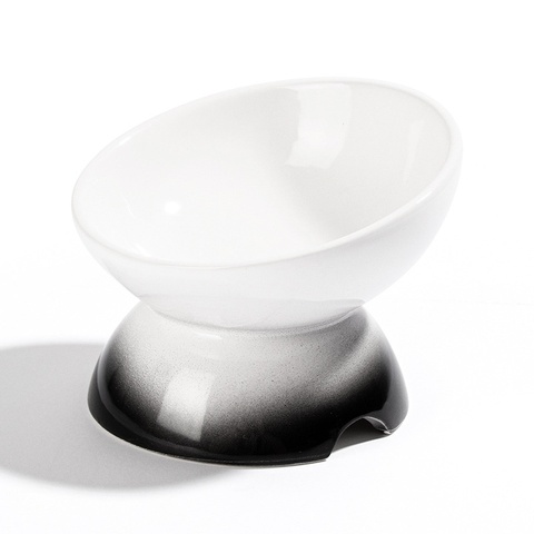 Loyoupai-Cuenco de cerámica ecológico para gatos, cuenco alto para mascotas, diseño oblicuo, protege la columna cervical, ayuda para la digestión, comida para perros, agua, arroz
